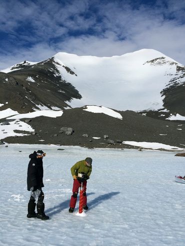 Drilling 100,000 year old ice, Patriot Mountains, middle of Antarctica. Total respect and thanks to Chris Fogwill (right) and Chris Turney (left)